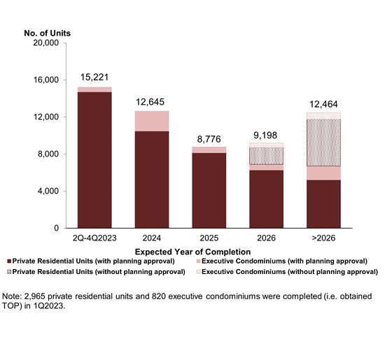 A total of 3,785 private residential units (including ECs) were completed in first Quarter 2023, with 15,221 more units expected in the rest of the year.