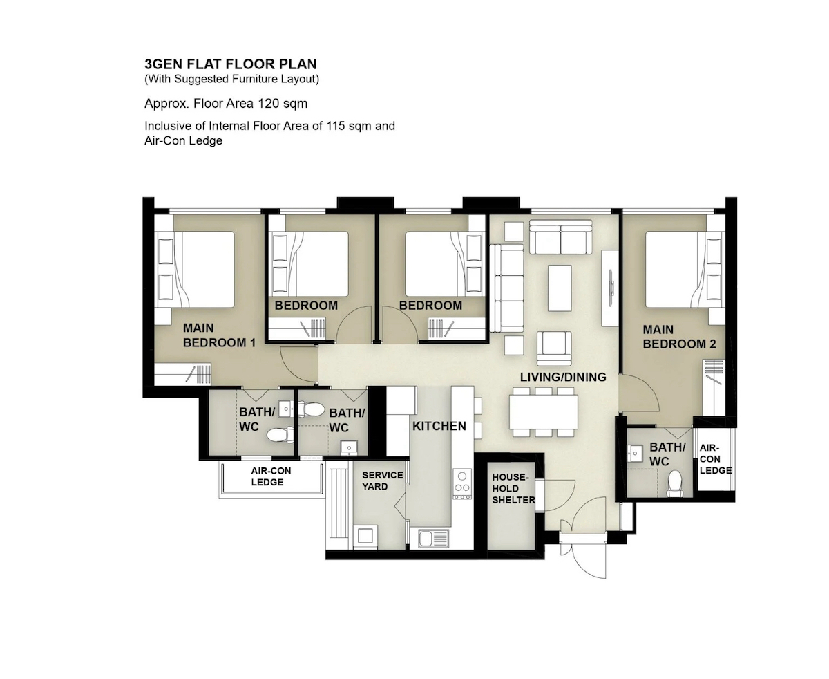The newer 3Gen flats are smaller (1,292 sqft) but slightly bigger than the new five-room BTO flats.