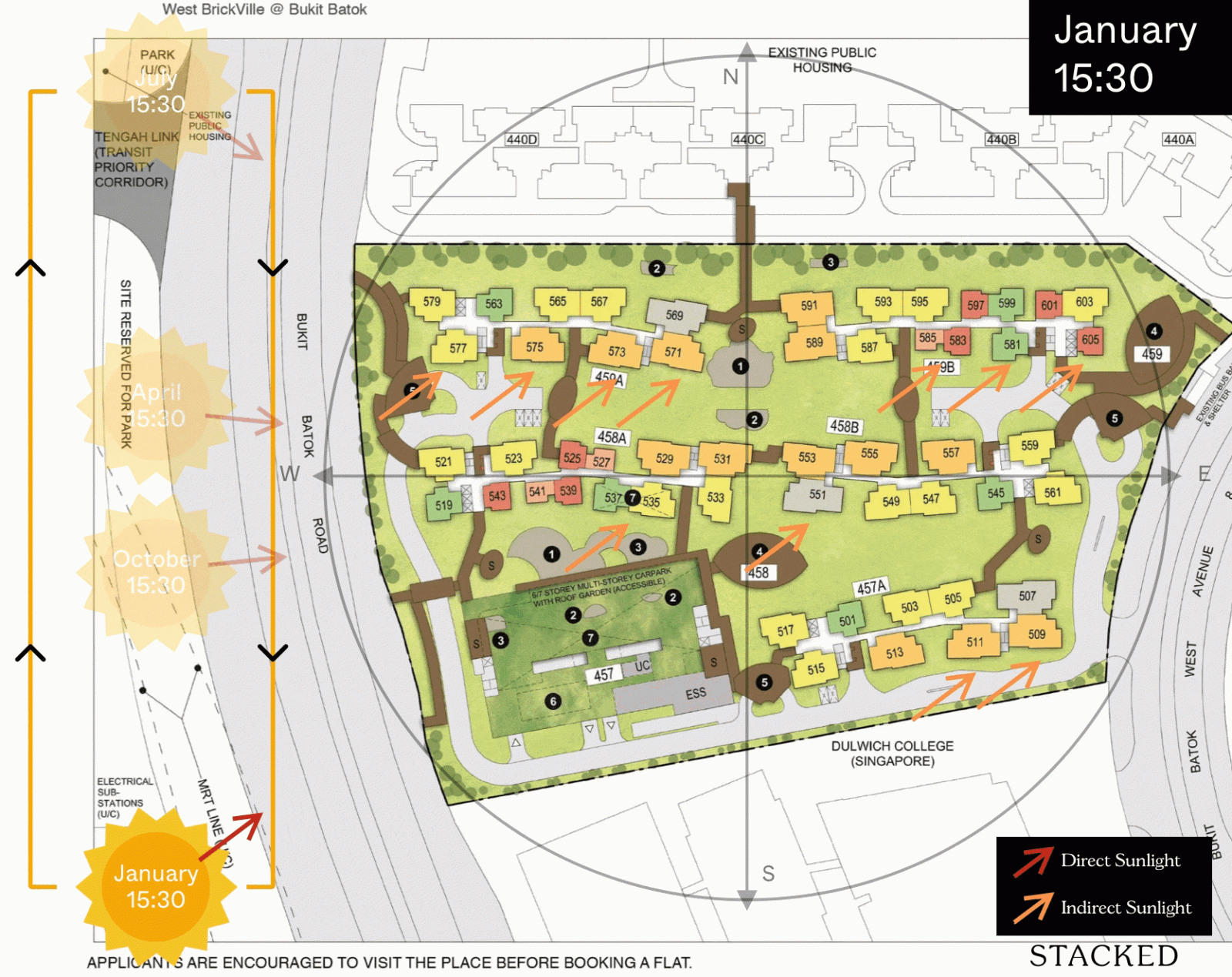| 3-Room | 458A | 519, 537 | Must surpass MSCP and preferably on a high floor | Overlooks the roof garden of the MSCP and Dulwich College towards the neighbouring HDB blocks |