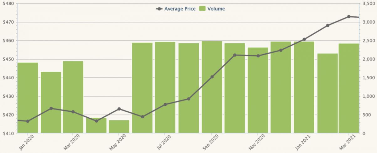 Notice that momentum is building rather than decreasing – the price hike in March was the steepest of the past four quarters.