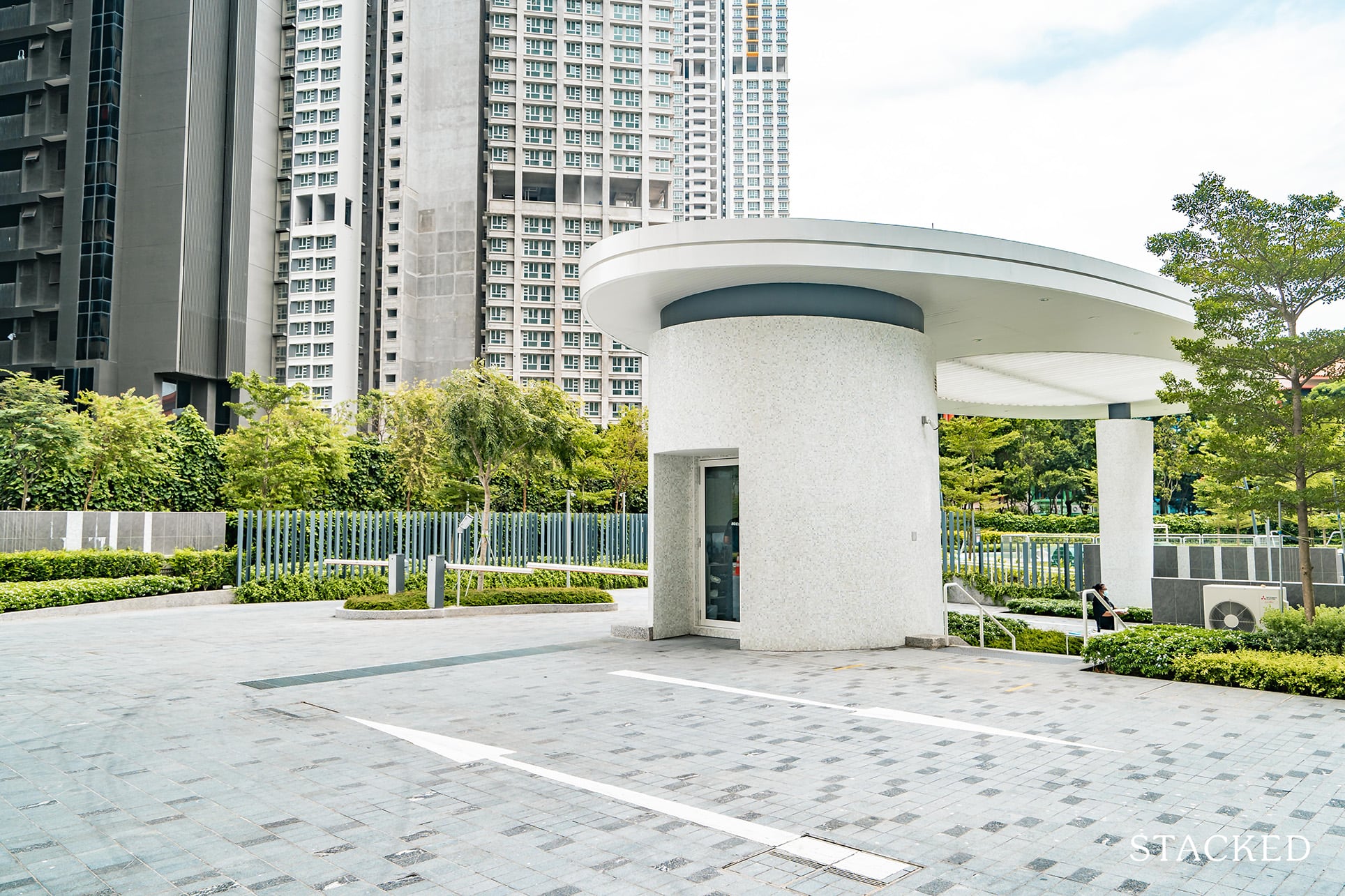 I do have a nitpick about the positioning of the guardhouse though. There are two barriers leading into the development, one for visitors and the other for residents. But the security check is positioned where the road is a single lane (and where the shelter is at).