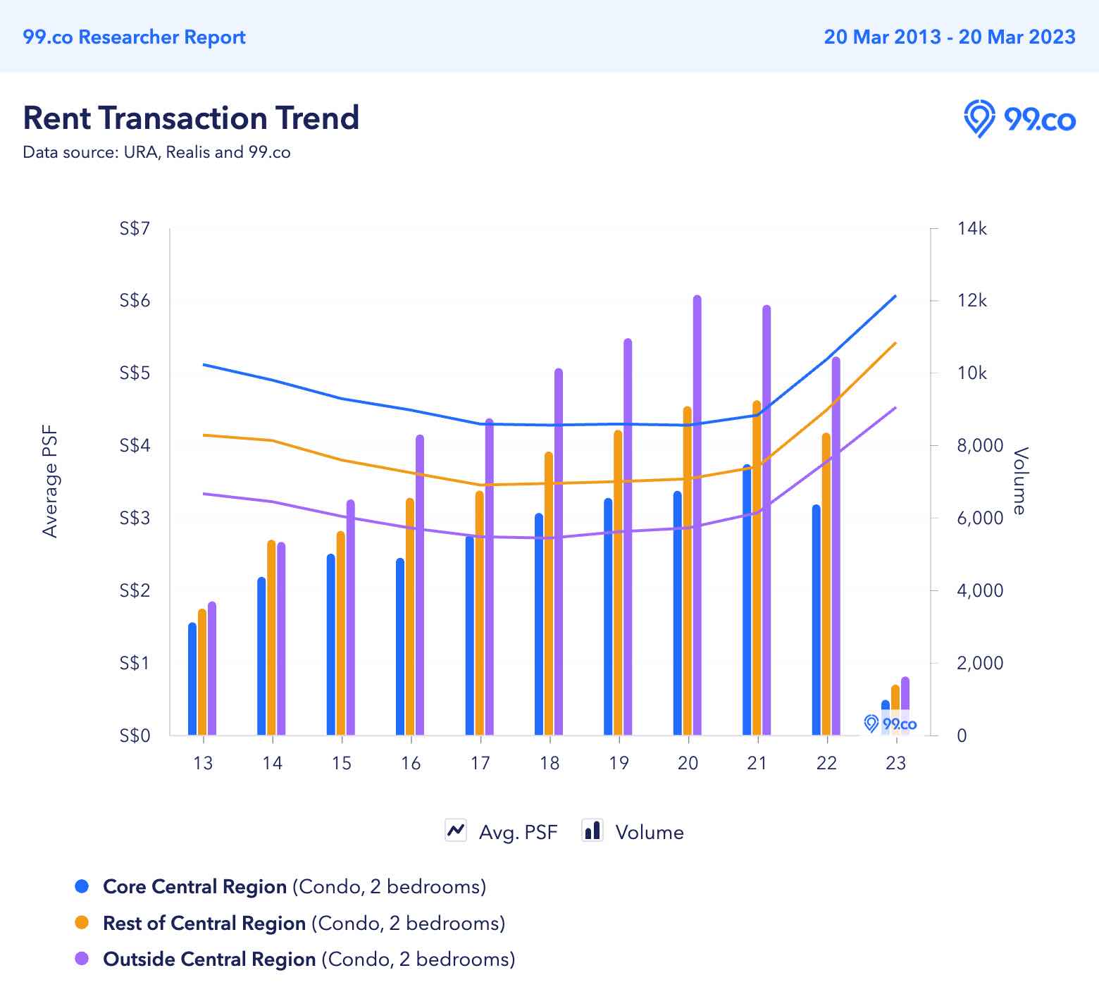 Here’s the average rent and volume from Jan 1 to Mar 20, 2023: