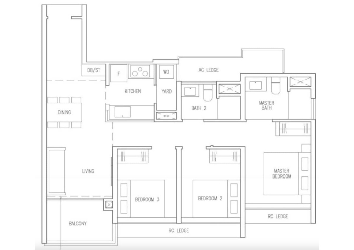 However, this is close to the price of a three-bedder in The Botany. Here's what its three-bedroom looks like: