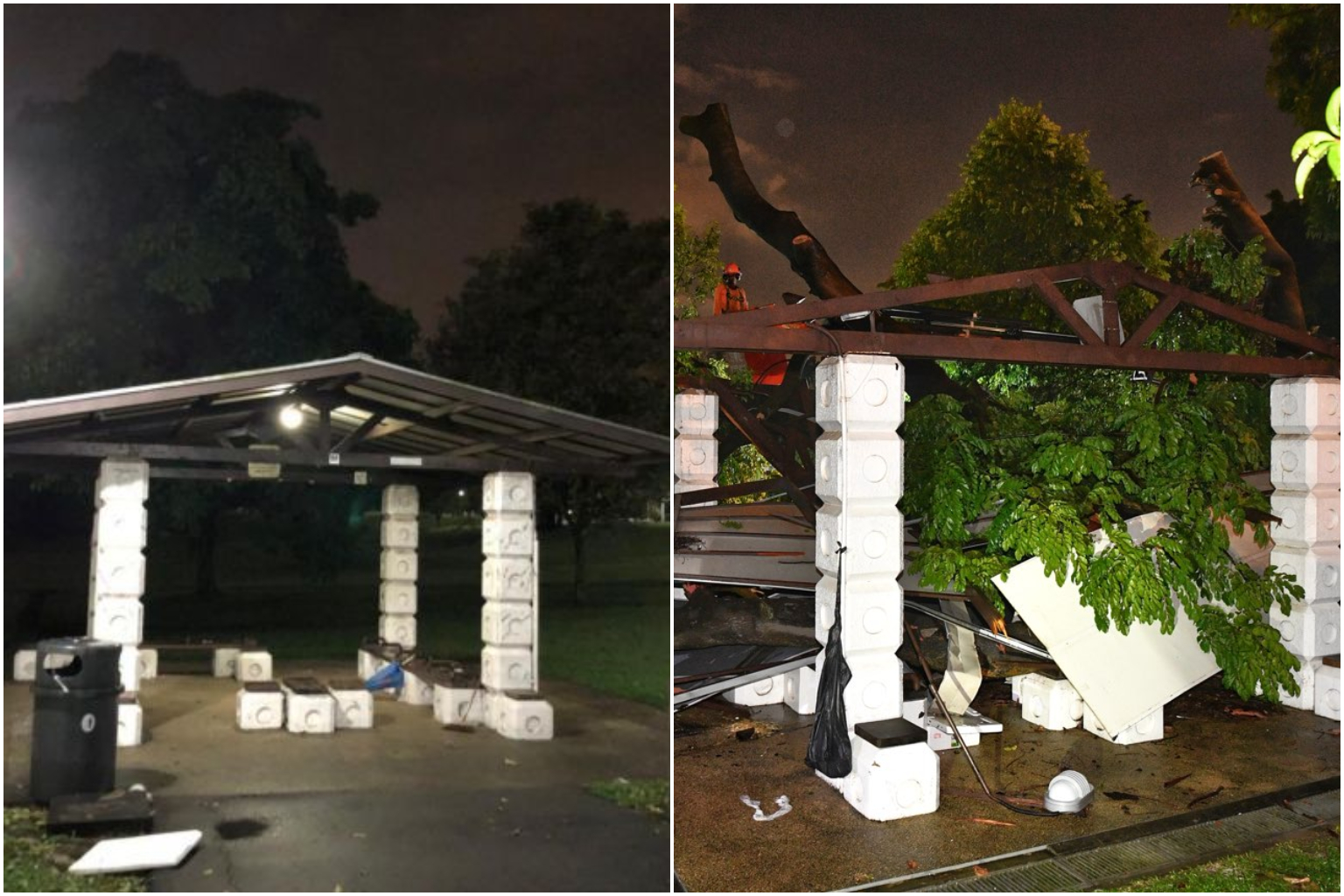 The ordeal tree fell onto a pavilion at the park. There were intense thunderstorms with gusty winds in the northern part of the island at the time of the incident, NParks added.