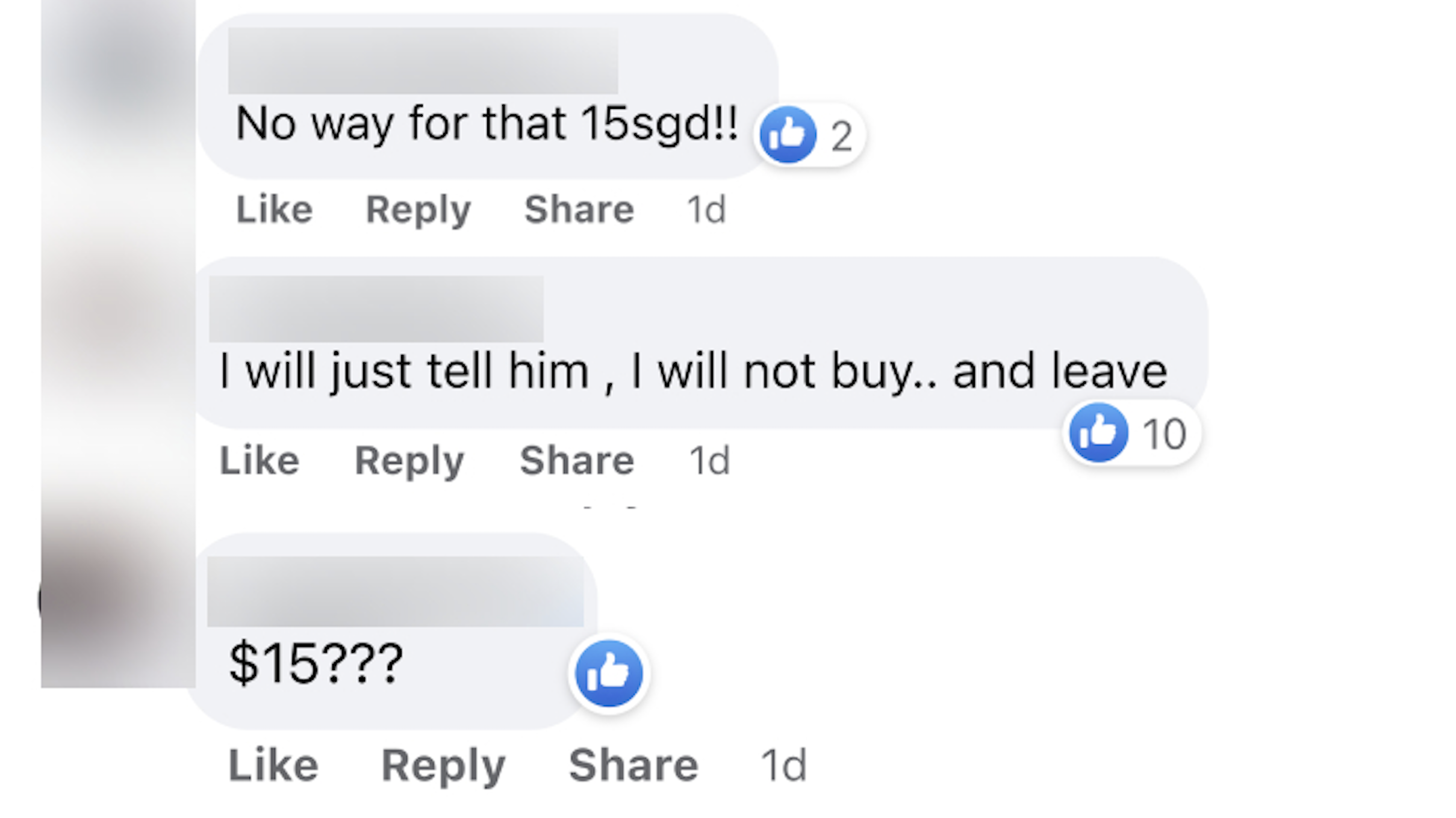 "I was informed [by the elderly stall owner] that the fish costs $3 and it's $3.50 for chicken thigh," the diner said.