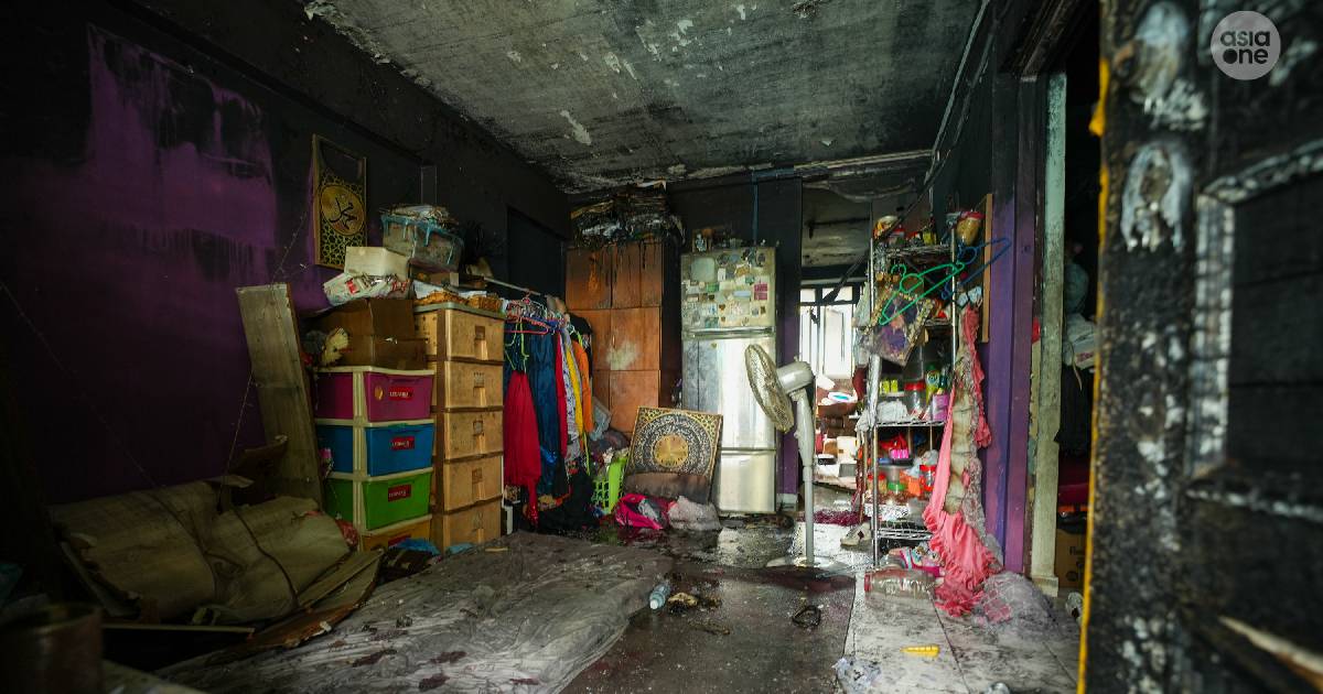When AsiaOne arrived at the scene around 2pm, the fire had already been put out and black smoke marks could be seen on the exterior of the block.