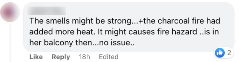 Others thought that neighbour who was using charcoal to cook could present a fire hazard.