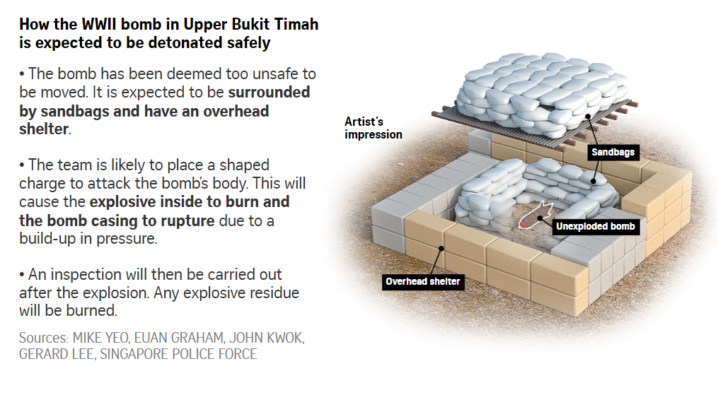 The aerial bomb was successfully disposed of by the Singapore Armed Forces (SAF) Explosive Ordnance Disposal team at 1.45pm, the police said in a Facebook post.