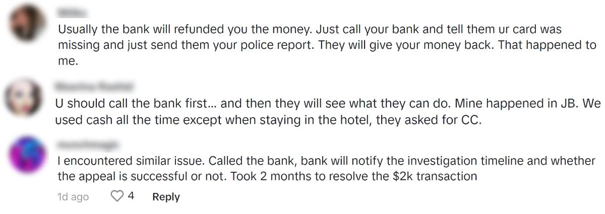 To avoid falling victim to such situations in the future, Lee said he would consider setting a credit limit for his credit card or use multi-currency cards for overseas travel like YouTrip.