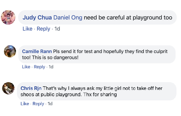 He wrote: "Dearest parents, I know your children are excited to play. But please please please… Please check the playground for hazards. Found this on the playground. Imagine a kid falling and [this] accidentally [stabs] them, or if a curious kid picks it up and plays with it."