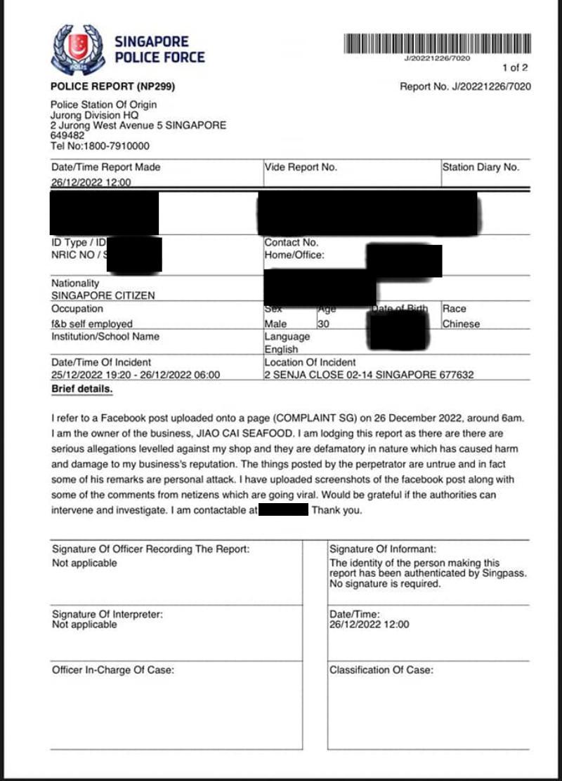 "One of our staff told you guys that the orders were not ready and suddenly, there was what seemed to be a hoo-ha outside the shop," shared Jiao Cai Seafood.