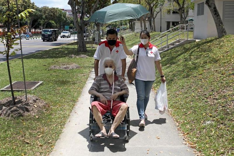 The Singapore Red Cross has upped the number of calls its staff and volunteers make to check on elderly clients who live alone, such as Madam Woo, so that all of them get at least one call a week.