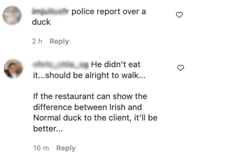 In an Instagram post shared on March 24, the company wrote that the man was at Duckland at Paya Lebar Quarter the previous day to settle the $35 bill for a half-sized roast Irish duck.