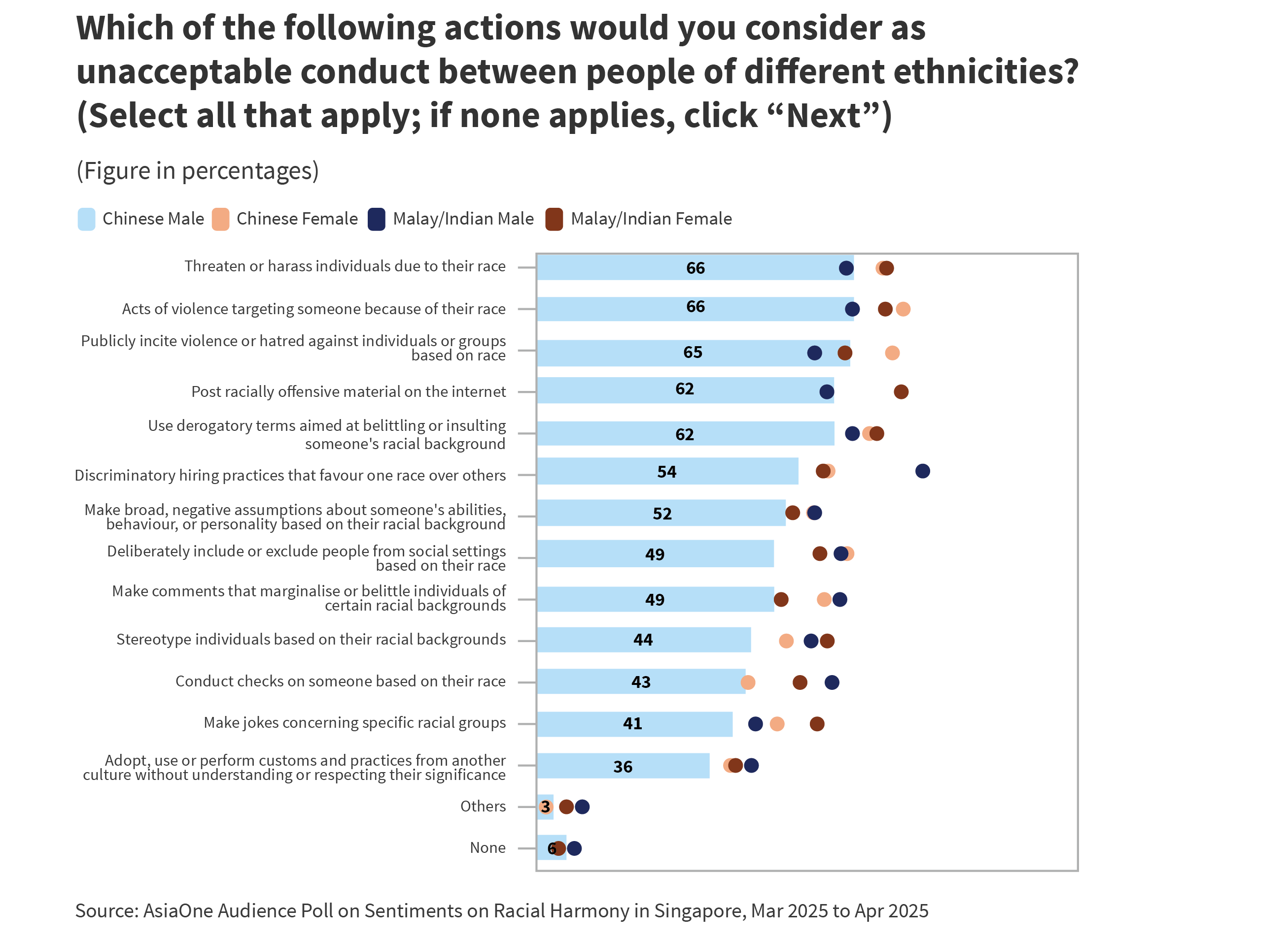 Discrimination and bias less likely than violence and insults to be viewed as unacceptable conduct between races: AsiaOne poll