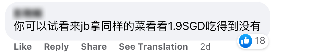 Amidst the flurry of comment, one Malaysian chimed in to say that even in Johor Bahru, you wouldn't be able to find the same meal for such a price.