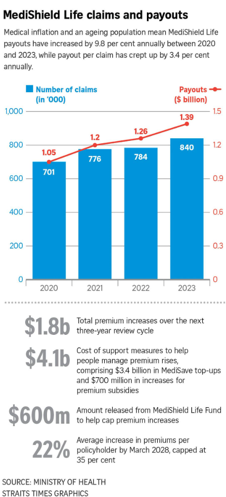 Health Minister Ong Ye Kung said the changes and support measures will strengthen the MediShield Life and MediSave systems, which, when combined, have worked well for Singapore.