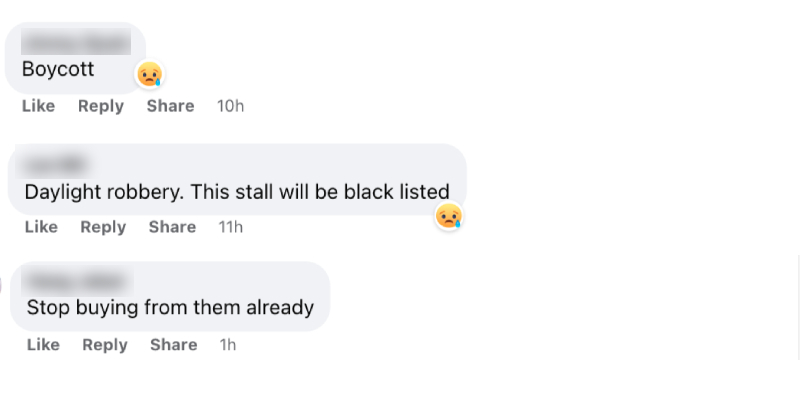 In the comments, several netizens called this "daylight robbery" and asked her to boycott the stall.