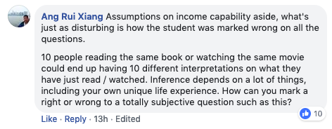 Within two days of 25-year-old Rainbow Lim uploading a photo of the contentious question onto Facebook, her post garnered over 2,400 reactions, 540 comments and 4,000 shares.