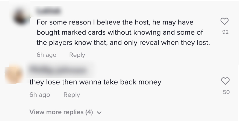 In a TikTok video shared by BlurBlur008 on Wednesday (May 18), it shows a group of players confronting a man for allegedly using marked playing cards during their gambling session.
