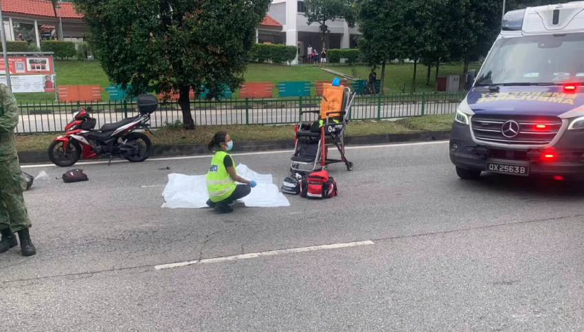 In videos and photos of the accident posted to the Singapore Roads Accident.com and SGRV Frontman Facebook pages, paramedics could be seen putting a white cloth over the body of the motorcyclist.