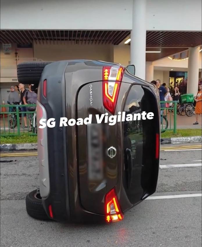 Another road traffic accident was also captured on camera at Pasir Ris Central Street 3 outside White Sands Mall, in which videos on social media showed a dark-coloured car flipped on its side.