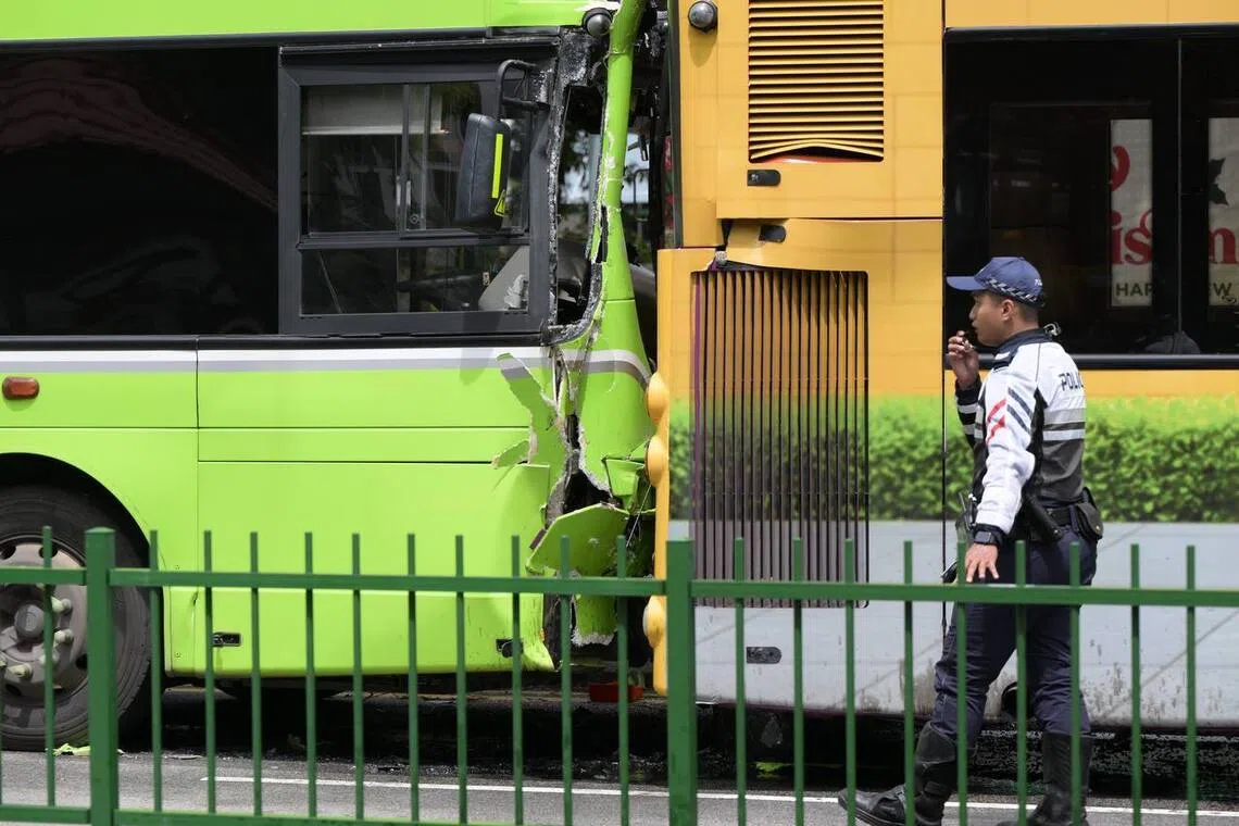 Bus service 98, operated by Tower Transit, had rear-ended an SBS Transit-run bus service 99, which was stationary, at 10.54am in Jurong West Avenue 1, the Land Transport Authority (LTA) said in a Facebook post at about 2.10pm.