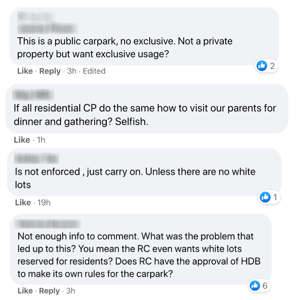 Some also pointed out that the RC's request had no teeth as the carpark is managed by HDB.