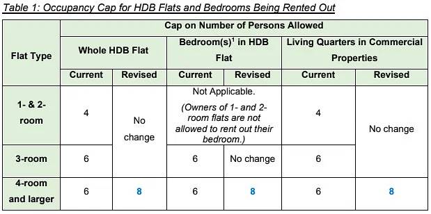 The authorities said they are relaxing the cap for occupants allowed in larger living quarters of HDB commercial properties – equivalent to or larger than a four-room flat – as well.
