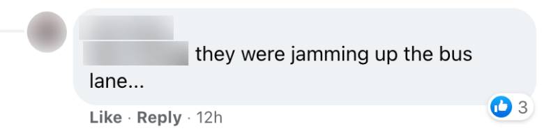 But another Facebook user pointed out that the group of cyclists were still blocking the bus on the road.