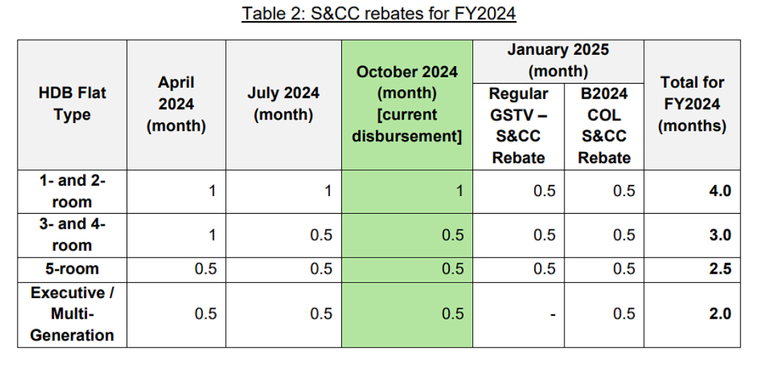 SINGAPORE — More than 950,000 Singaporean households in Housing Board flats will receive U-Save and service and conservancy charges (S&CC) rebates in October.