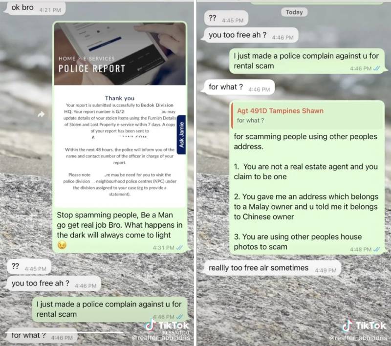 In this case, property agent Abu Idris managed to nab one such scammer, revealing their entire conversation thread on his TikTok account. His viral video has since amassed over 94k views at the time of writing.
