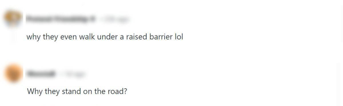 One netizen wondered why the trio had walked under a raised carpark barrier in the first place.
