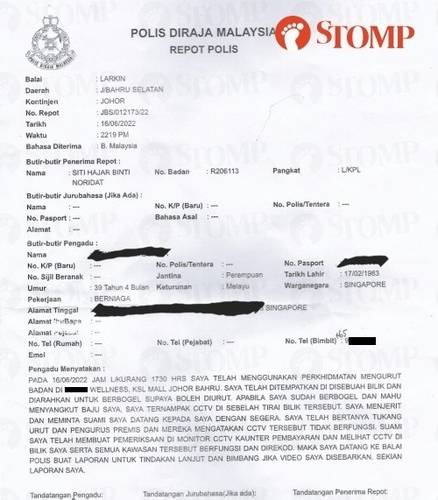 The Stomp contributor has since reported the incident to the Malaysia and Singapore police, and wants to warn Singaporeans to beware when visiting such places.