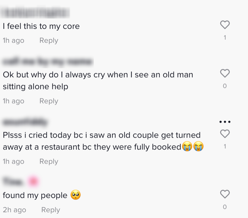In fact, two Singaporeans got so emotional seeing some old folk dining alone that they teared up.