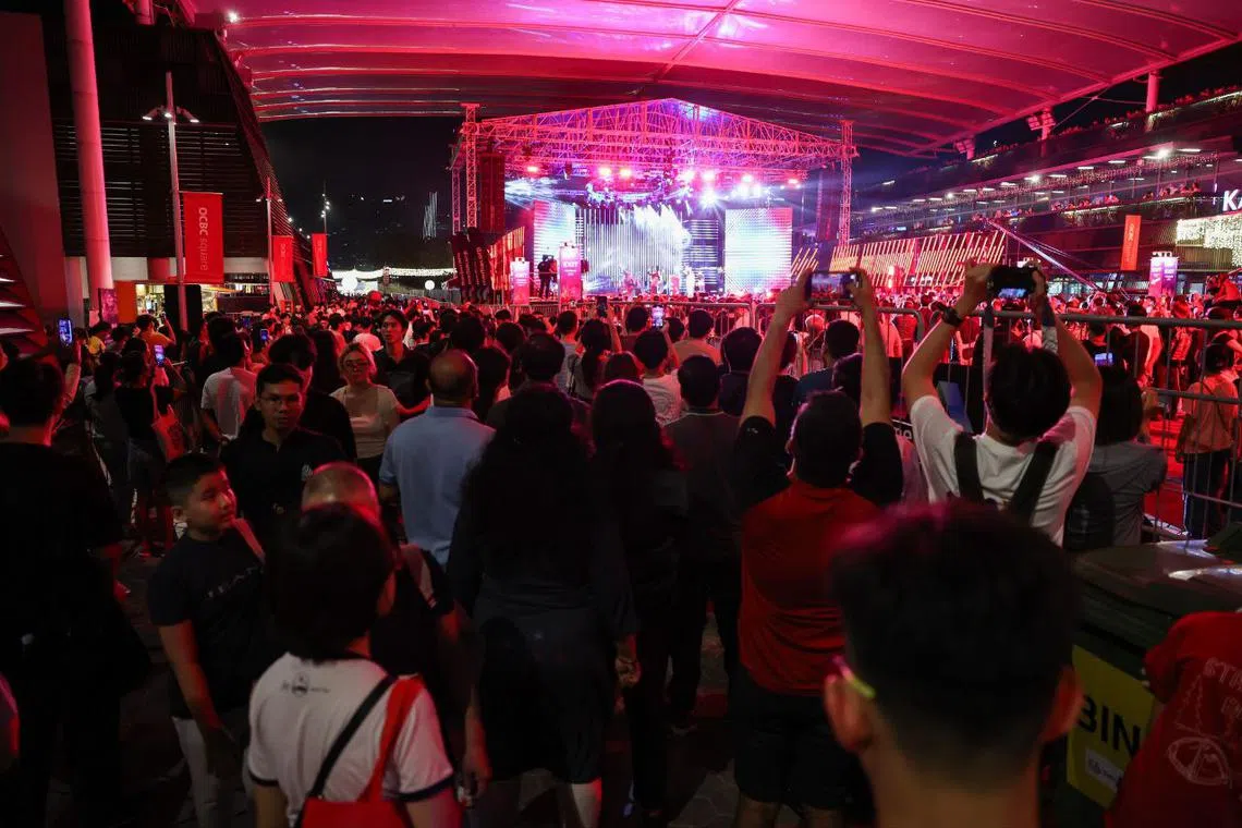 By about 9.45pm, the Police had to close off access to the Jubilee Bridge, and the Merlion and Fullerton waterfront areas due to the throngs gathered to catch the 15-minute firework spectacle that marked the finale of a countdown show at the Singapore Sports Hub.