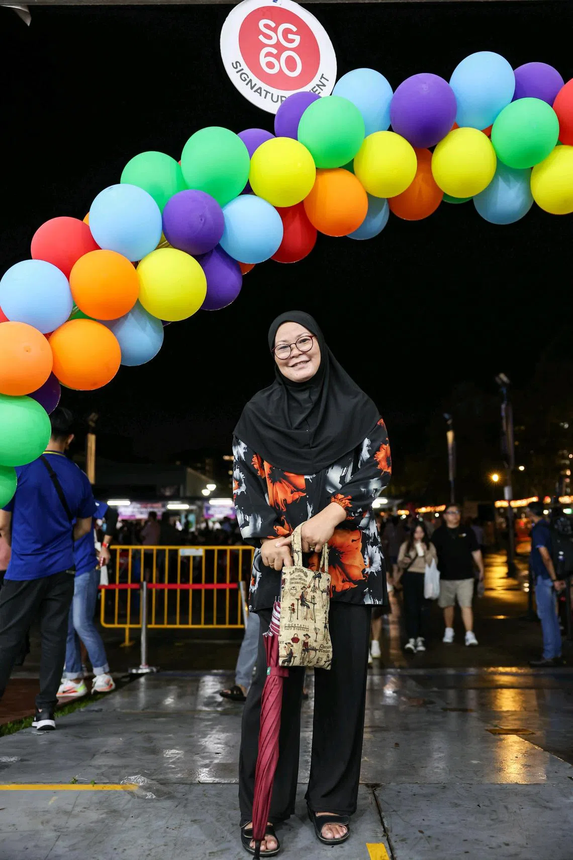 When The Straits Times arrived at Marina Bay at about 6.30pm, the path leading to Merlion Park was a flurry of colours, as many in the crowd toted colourful umbrellas and ponchos amid the evening drizzle.