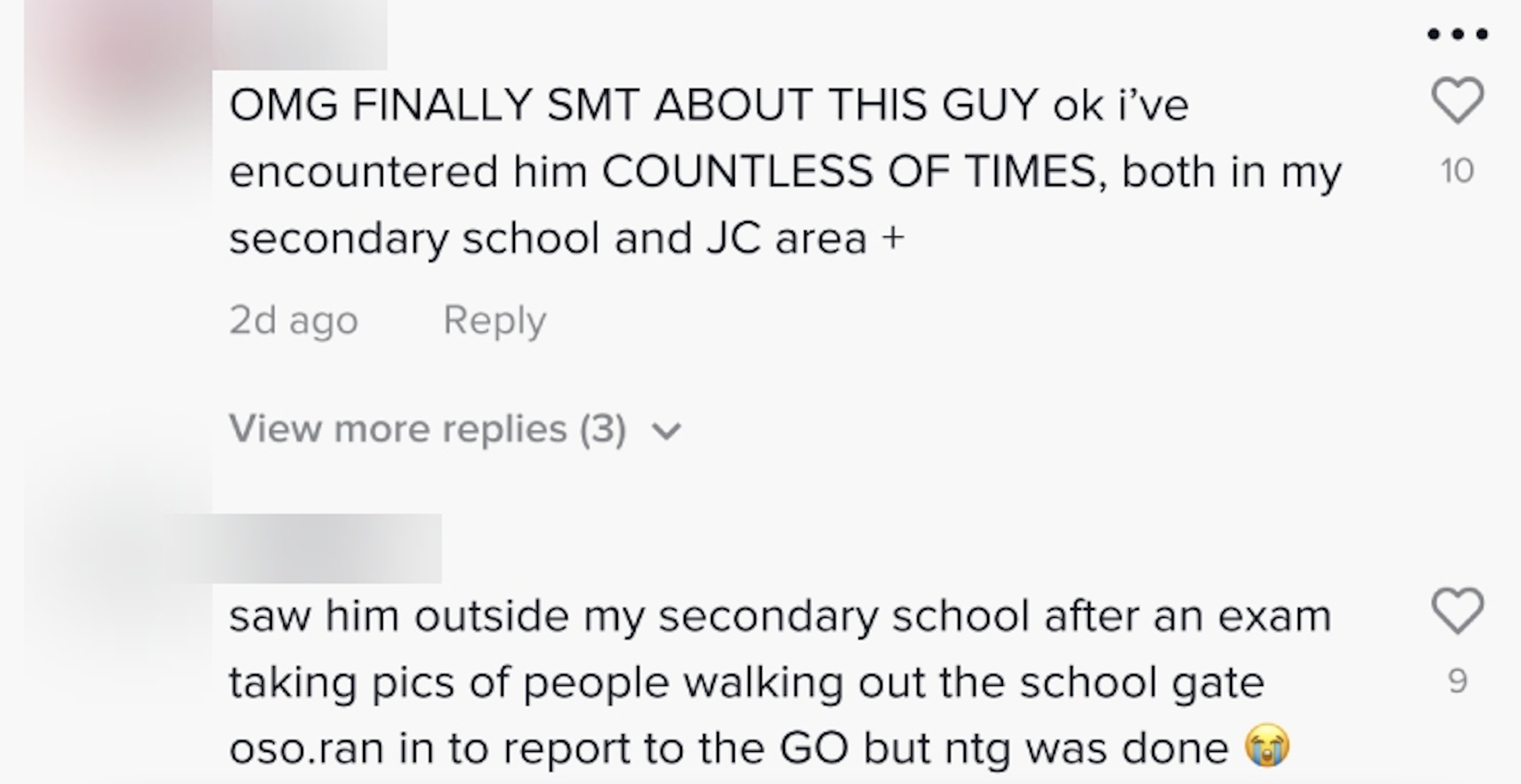 She added in the video captions that she has also seen the man loitering around Kent Ridge MRT station and urged girls to contact the campus security if they see him hanging around the university.