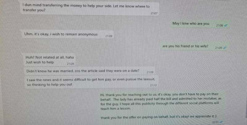 She told the strangers that "I hope all this publicity through the different social media platforms will teach him (the man who refused to pay) a lesson".