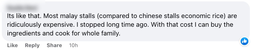In the comments, one netizen agreed that Tah's meal was expensive and claimed that nasi padang, as compared to 'cai fan' (mixed rice), is usually more expensive.