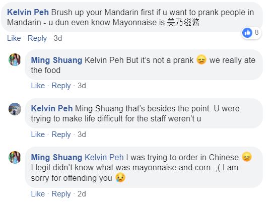 Some kind (and bilingual) commenters also included the Chinese translations of their orders, advising them to memorise them before jumping on a call with McDelivery staff.