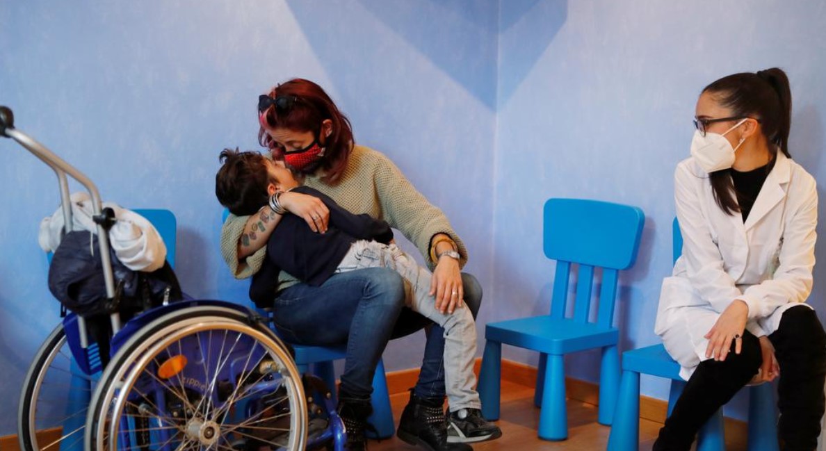 Valentina, 38, who works in a call centre for the postal service, is helped by her husband Paolo, a 58-year-old researcher, and two caregivers who work alternate days.