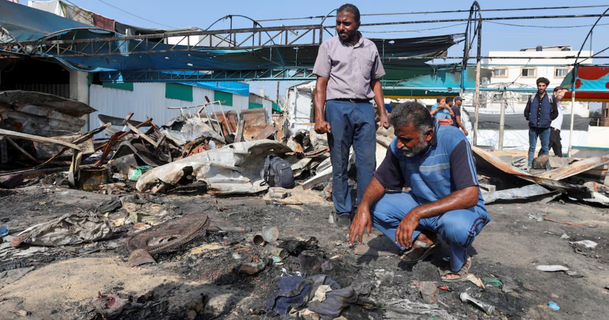 "I heard the sound of bombing, I looked out and saw very black smoke next to our tent," said Mohammed al-Dalou, speaking to Reuters at the location of the strike in Deir al-Balah, where charred ground and twisted debris lay between still-standing tents.