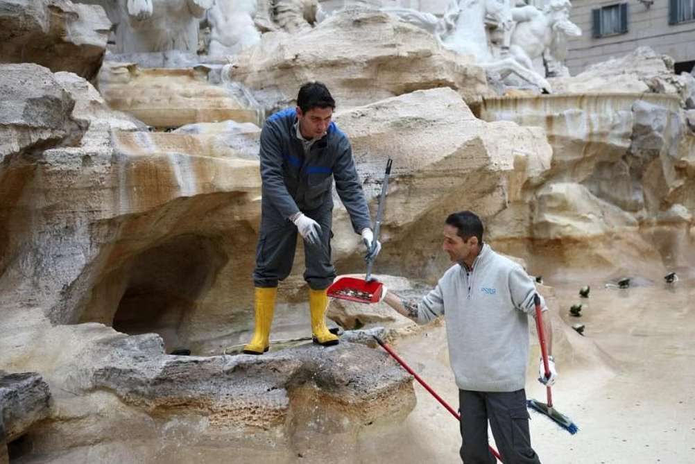 Twice a week, up to four workers collect the coins, said Francesco Prisco, a manager at Acea. The fountain is drained for cleaning twice a month.