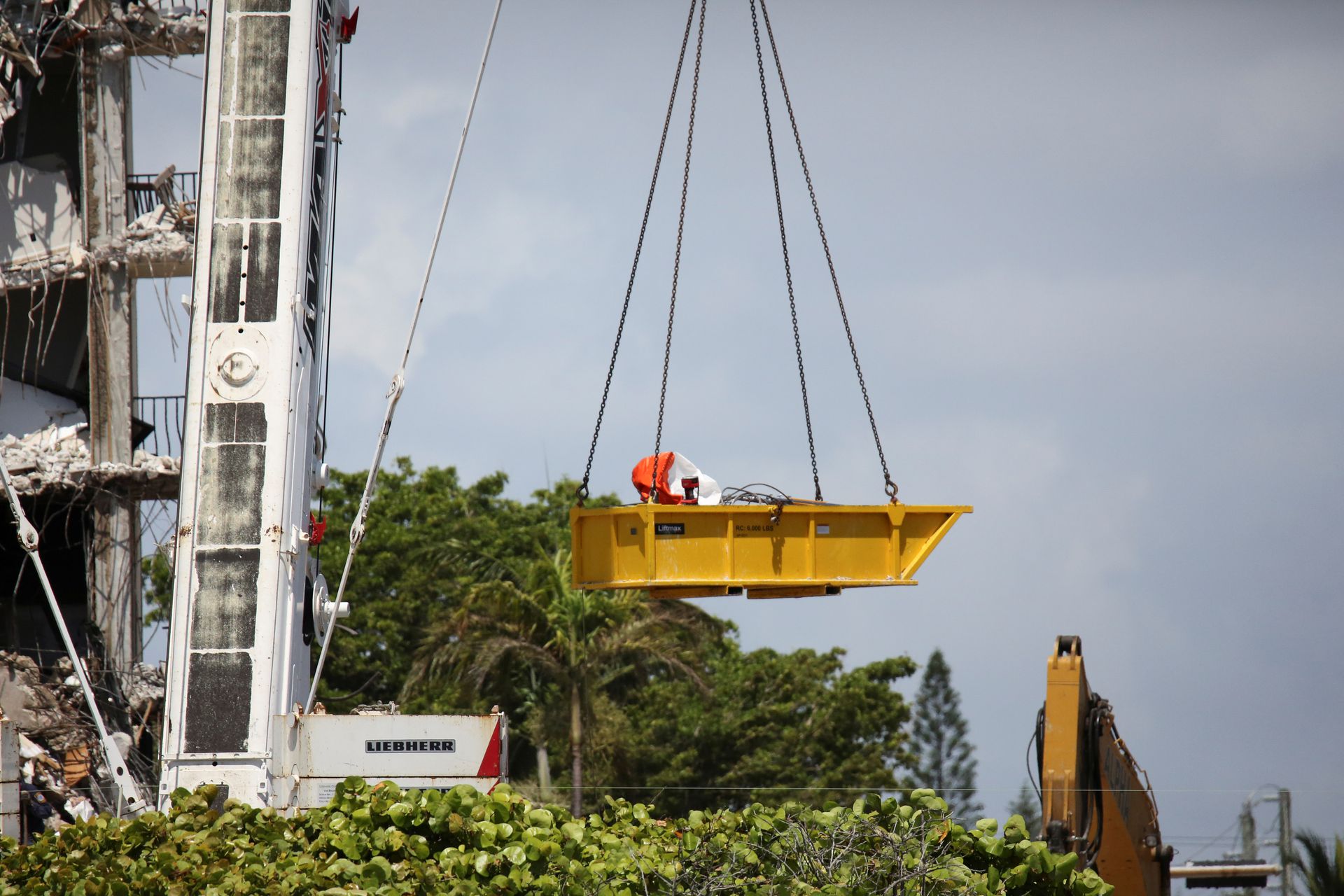 Two large cranes and two backhoes on Sunday joined in the debris-removal efforts that had previously been conducted essentially by hand by teams also using rescue dogs, sonar, drones and infrared scanners as they gingerly tunneled through the ruins.
