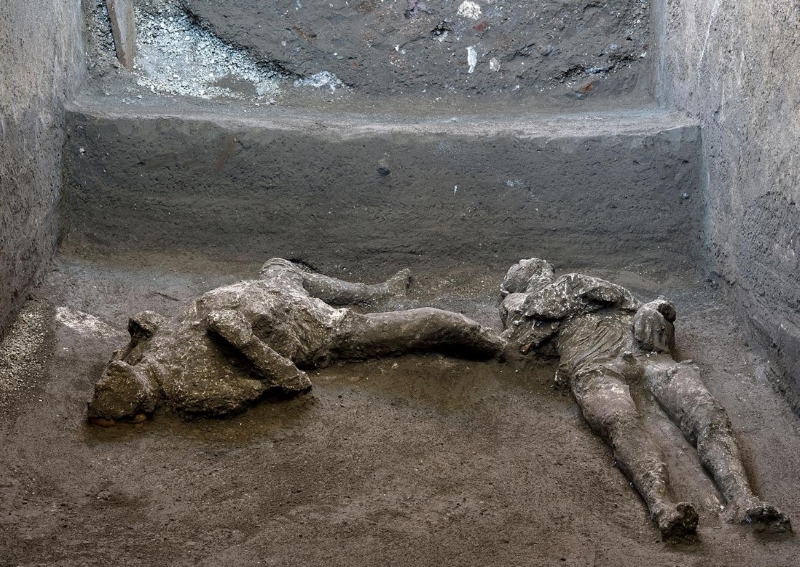 “These two victims were perhaps seeking refuge when they were swept away by the pyroclastic current at about 9 in the morning,” said Massimo Osanna, director of the archeological site. “It is a death by thermal shock, as also demonstrated by their clenched feet and hands.”