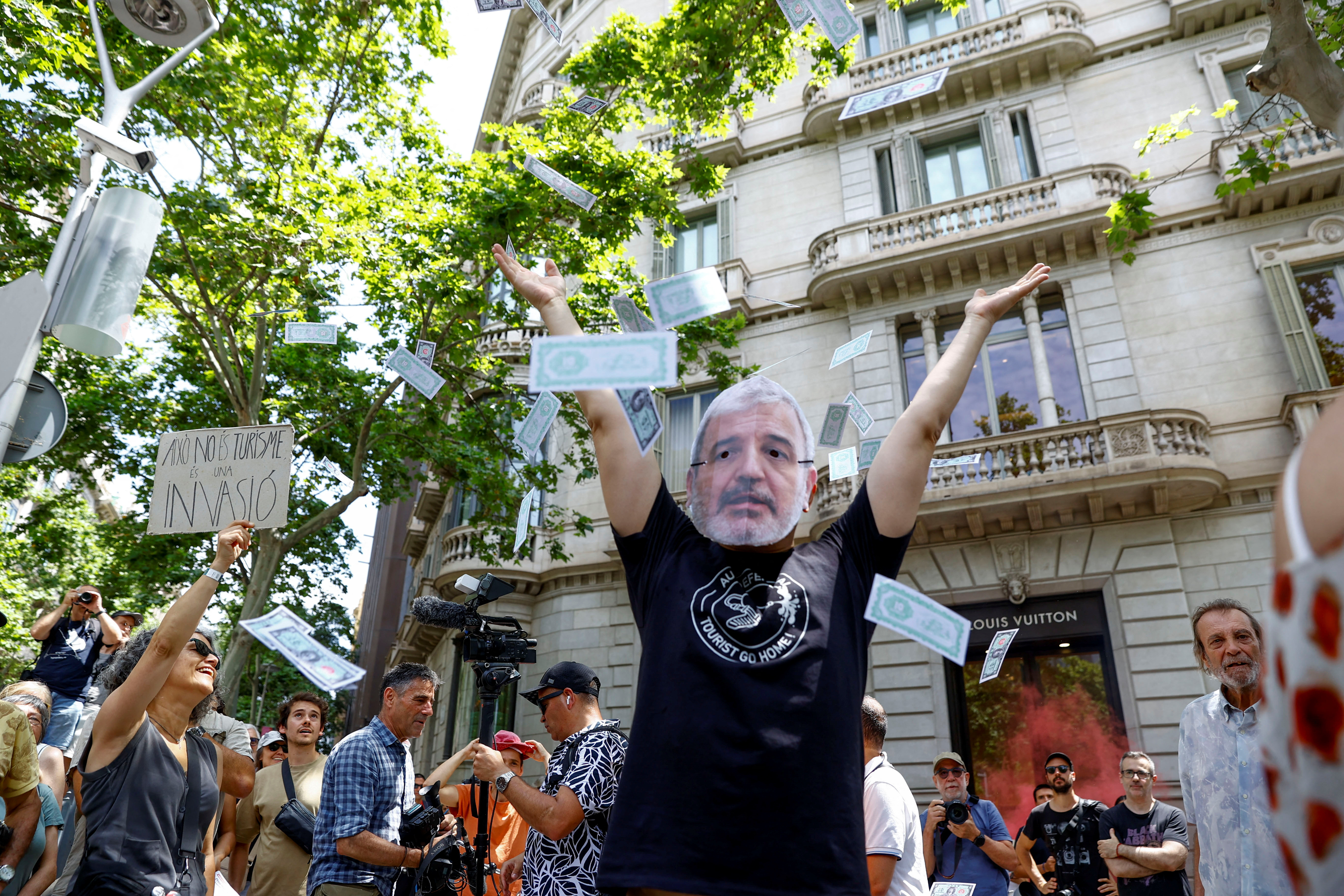 "Your holidays, my misery," protesters chanted in the streets of Barcelona while holding up banners emblazoned with slogans such as "mass tourism kills the city" and "their greed brings us ruin".