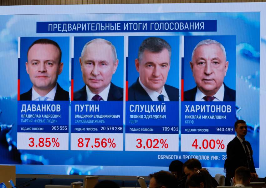 While Putin's re-election was not in doubt given his control over Russia and the absence of any real challengers, the former KGB spy wanted to show that he has the overwhelming support of Russians. Nationwide turnout was 74.22 per cent at 1800 GMT when polls closed, election officials said, surpassing 2018 levels of 67.5 per cent.