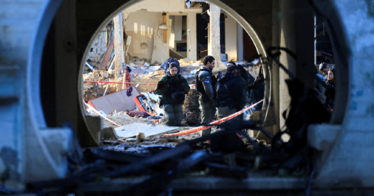Footage verified by Reuters showed flames engulfing the top floor of an apartment building shortly after the strike. Search and rescue teams moved from floor to floor inside the damaged buildings.