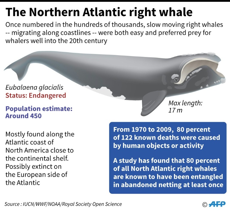 The Canadian government stepped up local tracking of right whales -- using aerial and marine surveillance, as well as ocean acoustic monitoring -- after more than a dozen were found dead in 2017 in the busy seaway and off the coast of New England in the United States.