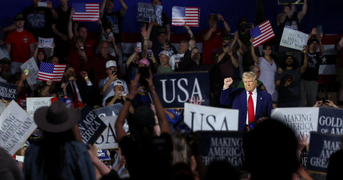 Speaking briefly at a National Guard base before the rally, Trump touted his administration's investments in defence and praised the foreign policy record of his first administration.